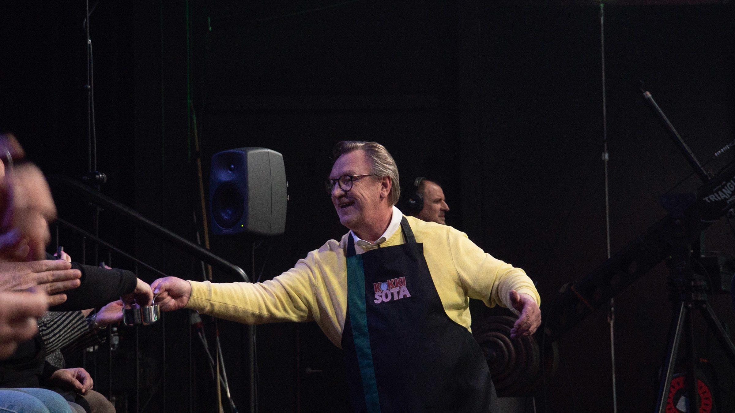 +Kokkisodan huippukokit Linnea Vihonen ja Harri Syrjänen saavat apukokeikseen sanansäilän kalisuttajat, stand up -koomikot Laura Haimilan ja Ali Jahangirin. Kiivaan kokkailun tuoksinassa juontajan viittaa kantava ylituomari Anni Ihamäki yrittää selvittää muun muassa iranilaisen riisin mysteeriä. Jakso 7/10.