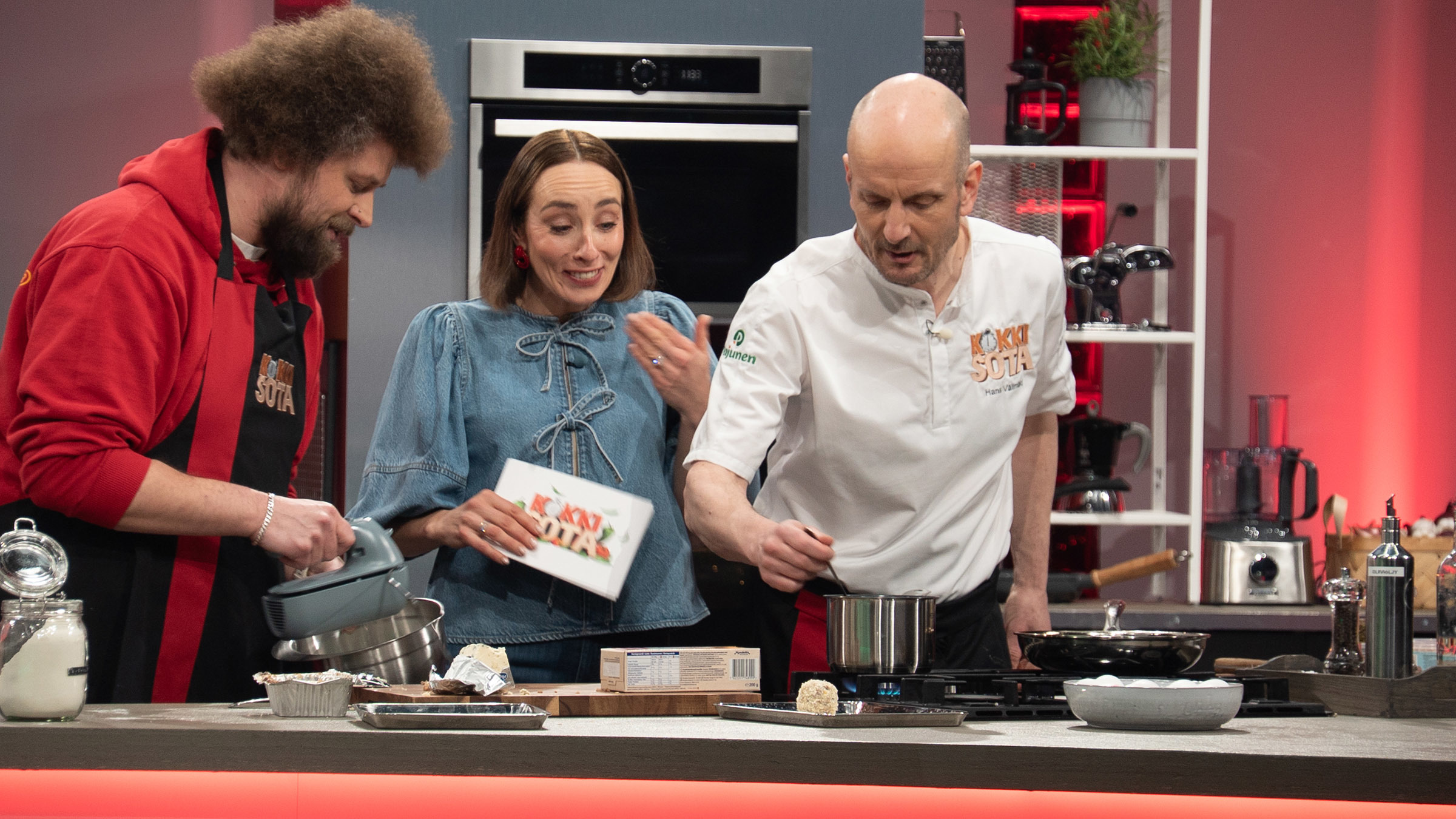 +Tulisessa Kokkisota-kamppailussa liekit loimuavat niin kielellä kuin pannulla Duudsoneista tuttujen Jarppi Leppälän ja Jukka Hildénin pistäessä keittiössä ranttaliksi. Tulitukea antavat Tommi Tuominen ja Harri Syrjänen, juontaja Anni Ihamäen yrittäessä pitää keittiöitä ojennuksessa. Jakso 4/10.